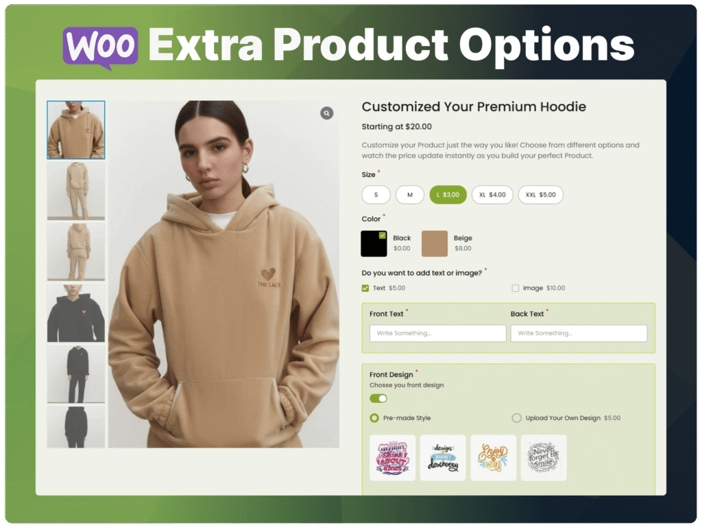 Add custom options like size, color, text, and image uploads to give customers a personalized shopping experience and increase your order value.